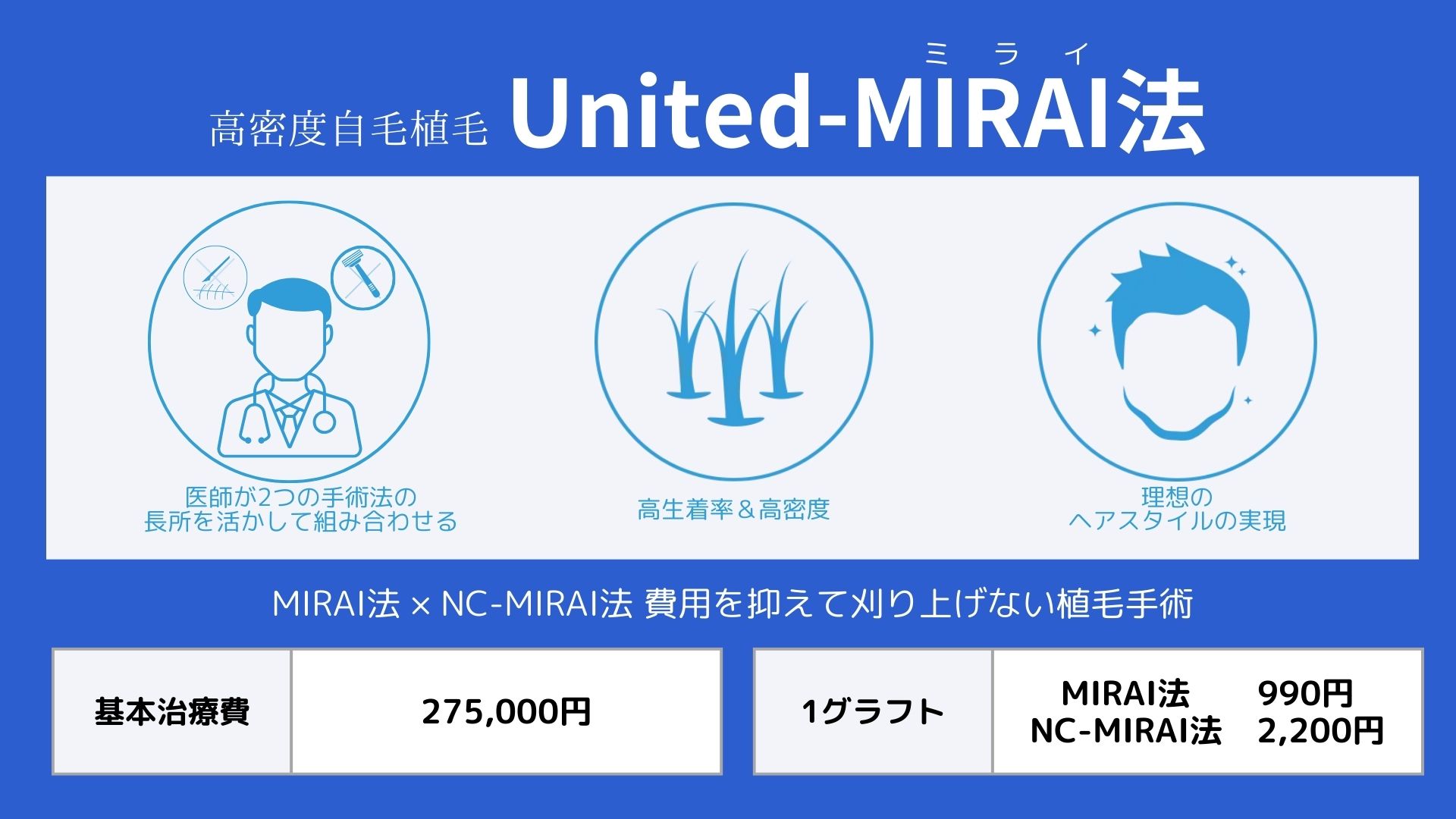 United MIRAI法は、MIRAI法とNC-MIRAI法をミックスさせたオリジナルの方法です。